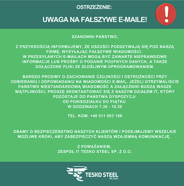 Dostawy wyrobów hutniczych do naszych Klientów realizuje spółka Tesko Steel Logistic Sp.z o.o. zapewniając terminowość dostaw w systemie „Just in Time”.